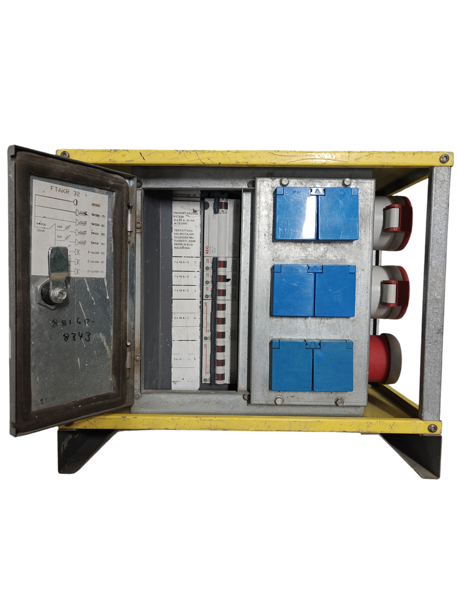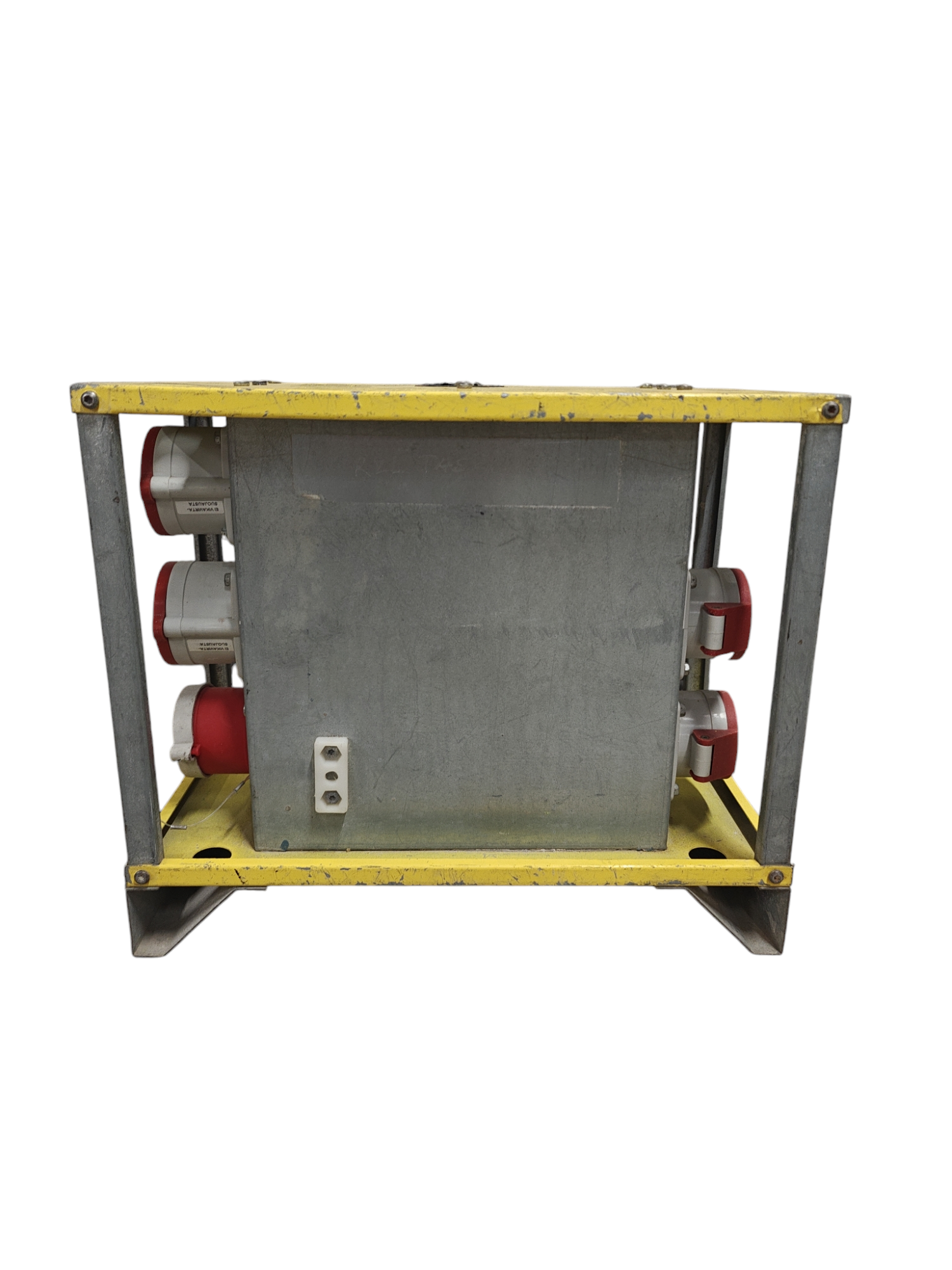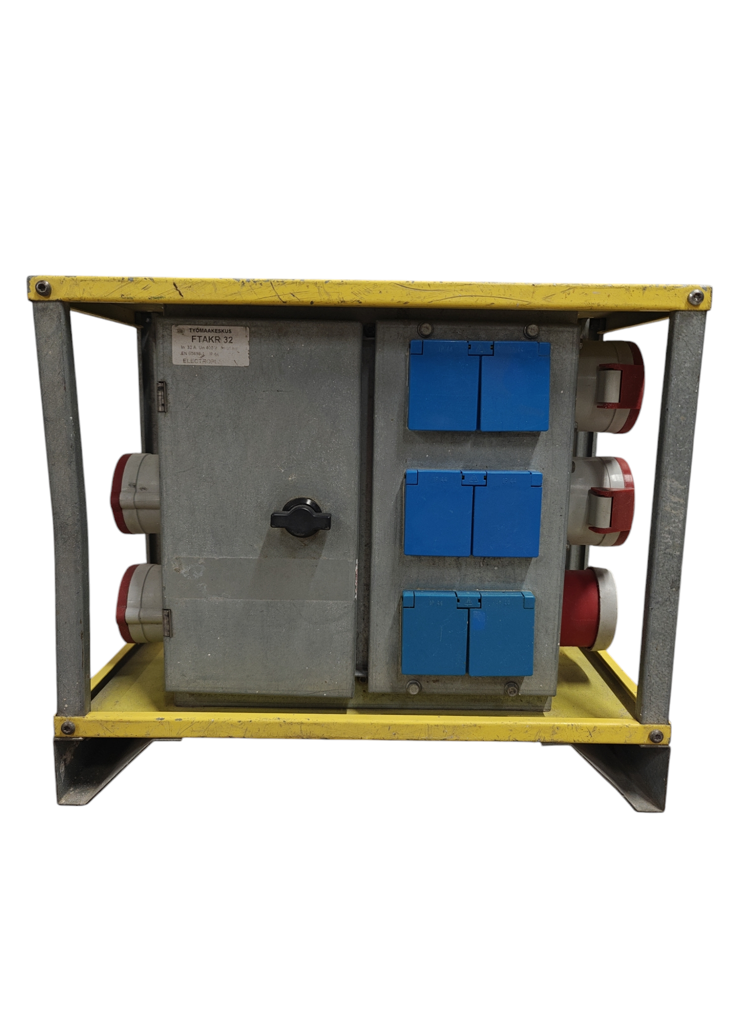 32A:n työmaan alakeskus, jossa vankka metallirunko. Kuitenkin pieni ja kevyt helposti käsiteltävä keskus.